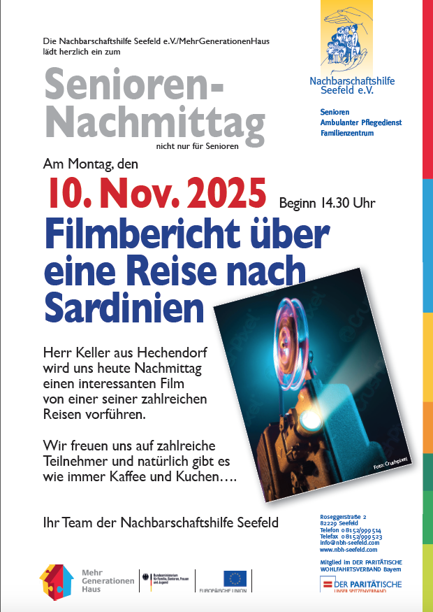 Einladung zum Seniorennachmittag – Filmbericht über eine Reise nach Sardinien