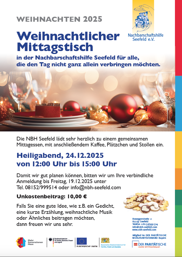 Damit wir gut planen können, bitten wir um Ihre verbindliche Anmeldung bis Freitag, 19.12.2025 unter Tel. 08152/999514 oder info@nbh-seefeld.com