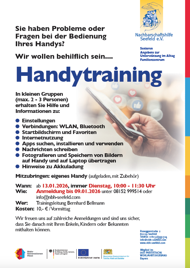 Sie haben Probleme oder Fragen bei der Bedienung Ihres Handys? Wir wollen behilflich sein mit einem HANDYTRAINING...